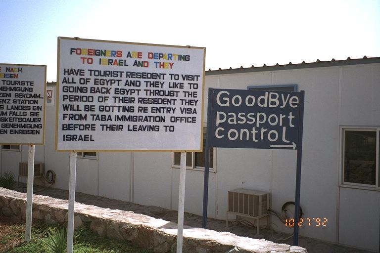 The border crossing between Taba, Egypt and Eilat, Israel is a small, dusty area with a few tiny buildings. We stood in line behind a group of students with bulky backpacks who planned to travel by foot to Mount Sinai. Finally, we reached the Israeli customs agent, who stamped our passports without comment and waved us through. Our car was given a cursory search and we crossed over into Egypt.