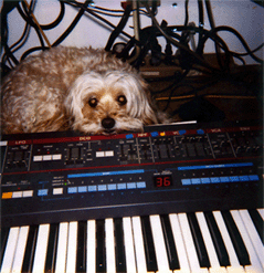 If you'd like to see a picture of Bart, click here. That's Bart up there, looking up at you from over one of Stan's music keyboards. You can see the same picture on the back cover of the Holiday In Dirt CD booklet. Bart also appears in the first few moments of the Bel Air Blues music video, now conveniently located on our Stan Ridgway Music Videos page.