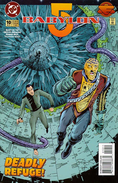 G'Kar and Garibaldi float away from the robot in their undershorts; it's still gaining. Garibaldi spots a maintenance hatch and pops it open; the two of them leave the inside of the axis tube and hang by handrails high above the Garden while the robot passes. Garibaldi doesn't let G'Kar back inside until he has the truth about Greegil: he's chasing G'Kar because of a woman, Greegil's wife, in fact. G'Kar refused to have sex with her to seal an alliance between two clans, even though it was his obligation as a high-ranking clansman; that was a grave insult to Greegil, who vowed revenge.