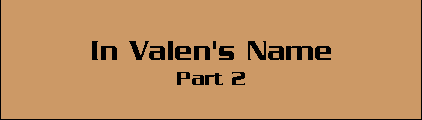 "Your son... should not have come with me," because he was a gentle soul who was transformed by battle from something delicate to something hard and unyielding. He offered to let Nukenn take his rage out on him, but when Nukenn saw that Valen had somehow had the window rebuilt during the short span of their talk, his faith in Valen was renewed.