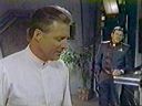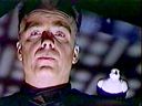 Sheridan lies on the table, three spots on his face bleeding profusely as the alien device retracts into the ceiling. He calls out again, but there's no answer. A long metal bar falls to the floor as his restraints come off of their own accord. He sits up just in time to miss being hit by a Drazi wielding a similar metal bar. Sheridan tries to speak to the Drazi, but finds the only way he can communicate is by grabbing the metal rod and fighting. The alien doesn't respond to anything Sheridan says, but apparently is controlled by a device attached to its head. Sheridan asks who his captors are and why they are doing this, but receives no response. They continue fighting, and Sheridan eventually triumphs as the Drazi is accidentally impaled on his own weapon.