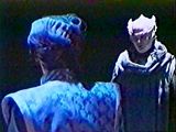 "I am more than happy to have you remain with the humans," a voice from behind her says. Delenn turns around, knowing that this is her successor. She says she doesn't know him, but he says she does. He removes his hood, and she recognizes him as Neroon of the Warrior Caste, from the Starrider's clan. Delenn doesn't understand. Valen chose three Minbari from each caste -- the Worker, the Religious, and the Warrior -- to serve on the Grey Council. Her replacement should have been from the Religious caste. She cannot understand why the Warrior caste had been given such great power. Neroon tells her that the Warrior caste is the caste that has suffered the most over the ages, dying as they defended the Minbari, and that, if a great war is coming, the Warrior caste should lead against it. She doesn't think the Warrior caste should be allowed to make policy. Neroon tells her that the Warrior caste was lied to and never told the reason for the Minbari surrender against the humans; if they'd known the truth, they never would have surrendered. He says that Delenn is an affront to the Minbari race and that she doesn't belong with either the Minbari or the humans, which makes her the perfect emissary. He tells her to go to Babylon 5 -- and stay there. The lights around the other Council members blink out, leaving Delenn alone in the chamber.
