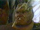 Hoping the worst is over, Sheridan is surprised to see another alien appear, this time a Narn -- the same one captured by the aliens earlier -- swinging a sword at him furiously. The Narn says nothing to Sheridan, but is also apparently controlled by a device attached to his head. Sheridan and attempts to fight off the Narn, and suffers little more than a cut to the leg, but when the Narn corners Sheridan and has the chance to kill him, the Narn says to him, "Kill me!" Sheridan realizes that their alien abductors probably kidnapped them to do battle. Sheridan defends himself, eventually knocking the Narn to the ground. Sheridan checks the Narn and discovers that, luckily, he is still alive.
