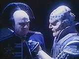 Vir is sitting at the bar in the Zocalo, nursing a drink, when he is joined by Lennier. They start to talk, each having heard about the situation the other is going through. Eventually, they stand up to leave. Vir promises to catch up with Lennier on the latter's next visit, and says goodbye using the traditional Minbari farewell. But overcome, he then hugs the clearly uncomfortable Lennier before they each go their separate ways.
