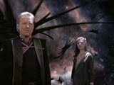 Ivanova doesn't understand why she would say anything that sounded so strange, but Delenn explains that Sheridan has two hands, both equal, but opposite, and that it is possible that is the "man in between" to which Sheridan's dream was referring -- Sheridan's equal and opposite. The final part of Sheridan's dream -- his looking up and seeing himself -- seems to support that theory as well. Sheridan orders that all of Babylon 5's squadrons be on flybys, since sooner or later, trouble will find them. And he expects it to be sooner.