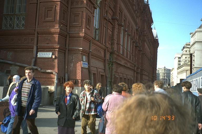 Addendum: The metro station (don't remember which) is filled with mosaics and paintings depicting the opening of a hydroelectric plant, happy workers in a field, athletes receiving medals, and so on -- supposedly representing the results of socialism. "It's all lies," Olga said. Then there is the monument to "Moscow's Best" at Octyabrskaya (?) Park, with photos of maybe 20 contemporary citizens and text about each. I haven't seen it up close yet. Olga says, "These are the people who've won the 'socialist' competiton. Such things were always invented."