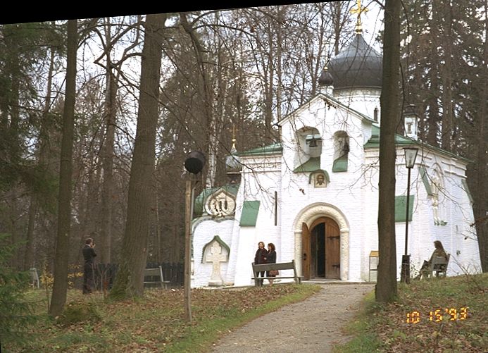 The Monastery is much smaller than the one in Sergiyev Posad. A large graveyard takes up most of the grounds. Most of the graves are wasting away, neglected. A fenced-off building has five cars in its yard. Mitya says the head priest lives there. A small service was being performed in one of the church buildings. A woman with a bad ankle stood at the back of the room, well away from the priests, and crossed herself repeatedly.
